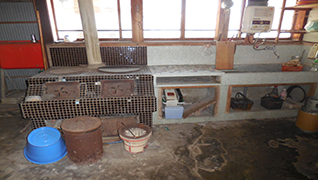 昔ながらのカマドが残る茅葺屋根のお家