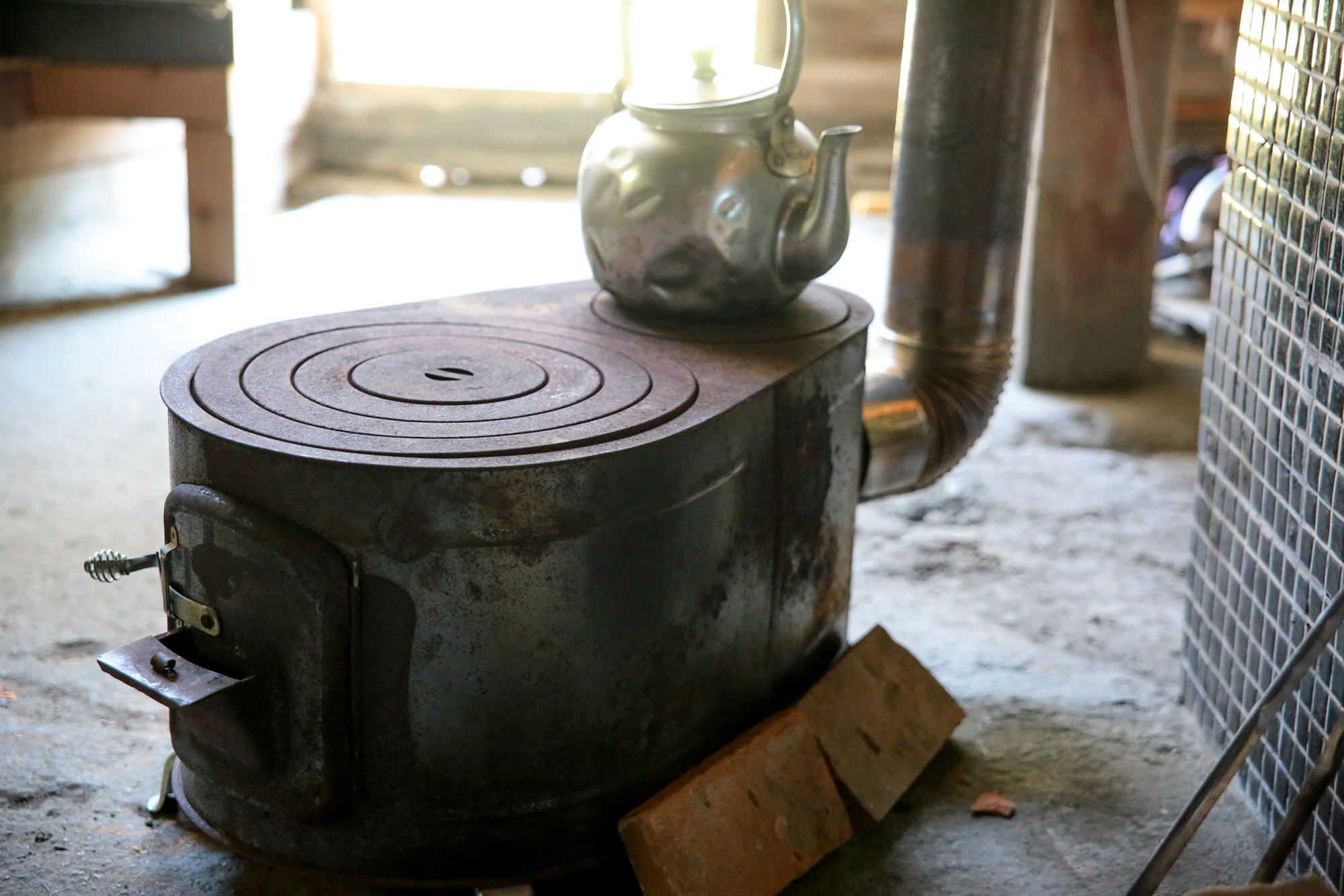 母屋は2階建て。玄関入って一間、奥。そこにある3口の「おくどさん」が、家族の、家の成長を、日々見守り育み続けてきた。窯も釜も現役で、大家さんのお母様が御健在のころは、日々のごはんはおくどさんで炊き上げたという。年末年始の親戚一同大集合(こどもだけで10人以上!)の際には、おくどさんで蒸しあげた餅米で餅つきを行うことが年中行事だったとか。おくどさんの火の番は、薪拾いから火加減までこどもの仕事で、なかなかこれが難しかった、ガスで「ひとひねり」とはちがうんや、懐かしいなあ、と大家さん。